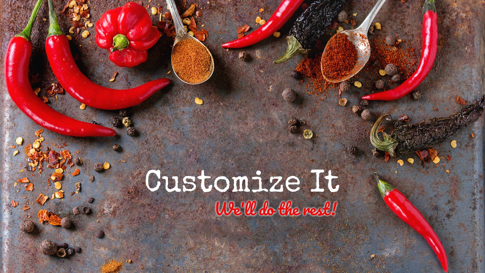 CUSTOMHEATS is the first and Only platform that allows you to fully customize your sauce the way you want it. With over a hundred ingredients to choose from, every sauce you design will be unique and made fresh. Forget that boring hot sauce sitting in your fridge for months, try CustomHeats today!